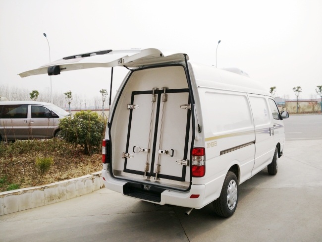 二、廂體配置:采用我公司液壓吸附一體成型生產線制造,保溫性能達到國家A級標準廂體內部尺寸:2900X1450X1420容積為5.8立方, 廂體內面料采用最新款納米玻璃鋼(不吸光、隔熱性好、硬度強、抗氧化),保溫材料為無空隙填充聚氨酯發泡,廂體底部為平面納米玻璃鋼,后門全密封玻璃鋼雙開門,不銹鋼后門合頁及鎖件,廂體內部采用LED照明燈及廂體示寬燈。